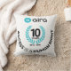 This Aira 10-Year Anniversary Throw Pillow features a double-sided design, making it a standout piece from every angle. The square-shaped pillow has a soft white fabric cover with a clean, modern look. On both the front and back, the design prominently displays the Aira logo in blue and black at the top, followed by a bold "10 YEARS" emblem encircled by a laurel wreath. The years 2015 - 2025 are printed below, celebrating Aira’s decade of innovation.