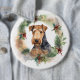 Airedale Christmas Wreath Festive Pup 6 Cm Round Badge