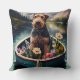 Airedale Dog on a Paddle: A Scenic Adventure Cushion