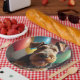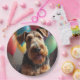 Airedale dog with cake and balloons paper plate