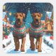 This festive design captures the joyful spirit of the holiday season, featuring an adorable dogs.Nestled in a winter wonderland, complete with a decorated Christmas tree, and beautifully wrapped presents. Snowflakes gently fall, adding a magical touch to the scene, while the vibrant colours of the holiday decorations create a warm and cheerful atmosphere.