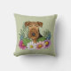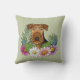 Airedale Terrier And Colourful Summer Flowers Gree Cushion