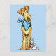 Subject illustration by Andie of an Airedale Terrier wearing a little blue sailboat scarf and hugging a puppy toy.