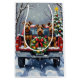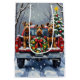 Bring bold, spirited charm to your holiday season with this handsome Airedale Terrier Christmas design! This festive scene features three distinctive, wire-coated Airedale Terriers sitting attentively in the back of a classic red pickup truck, nestled in a picturesque snowy winter forest. The vintage truck is adorned with a vibrant Christmas wreath, twinkling with red and gold ornaments and warm, glowing lights. Soft snowflakes gently fall, enhancing the winter wonderland effect. A decorated Christmas tree in the background completes this heartwarming picture, making it an ideal Christmas gift for any Airedale Terrier owner, dog lover, or admirer of festive and unique dog art. This design perfectly captures the joyful spirit of the holidays.