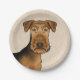 Airedale Terrier Cute Cartoon Dog Head On Beige Paper Plate