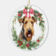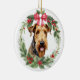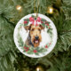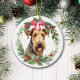 Airedale Terrier Dog Red Bow Holly Wreath Ceramic Ornament