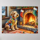Airedale Terrier Fireplace Christmas Lights Poster