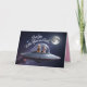 A Dog Valentine's Day card featuring an Airedale couple on their way to the moon in a flying saucer.