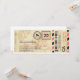 A vintage inspired boarding pass wedding invitation in shades of: light brown, navy blue, and coral pink. Customisation with your names and wedding information!