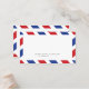 Vintage inspired airmail escort/placecard design. Fun for a destination, vintage themed event. Bright Red and Royal Blue Stripe background continues on reverse for added pop of colour (include a small thank you note or other text of your choice).