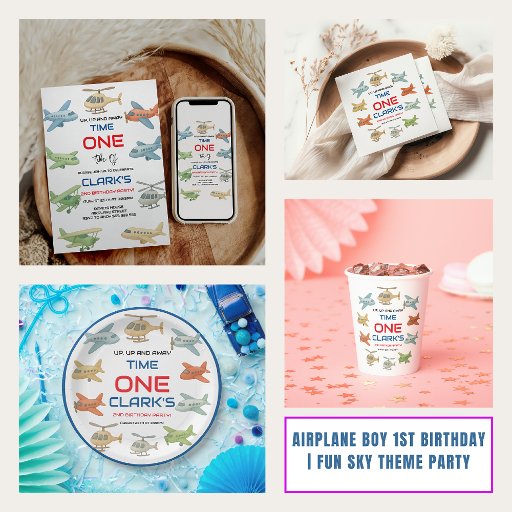 Airplane Boy 1st Birthday | Fun Sky Theme Party Invitation