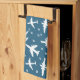Airplane Pattern Dark Blue and White Aviation Tea Towel
