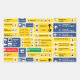 Collection of yellow and blue airport signs and information boards. High contrast signs to ensure good readability and legibility of the signage.