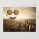 A Steampunk dual balloon airship drifts over the heart of Chicago.  Sepia toned