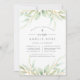 Elegant watercolor botanical invitation for your little one's baptism, christening or dedication frames your church ceremony and party details with a border of sheer pastel watercolor greenery and leaves. A tiny cross completes the design.