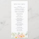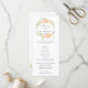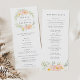 Our garden chic wedding program features your ceremony details in elegant grey lettering, with your names encircled by a wreath of pastel peach watercolor flowers and springy mint green foliage. Reverse side lists the members of your wedding party with easily editable text fields. Coordinates with our Airy Floral wedding invitation collection for summer, spring, outdoor or garden weddings. Use the template fields to add your ceremony and bridal party information, and then click "Customise It" to reposition elements if needed. Need help? Contact me via the "Ask this Designer" link on this page.