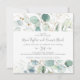 This airy greenery and gold leaf square wedding invitation is perfect for a modern wedding. The elegant botanical design features light and airy watercolor eucalyptus accented with whimsical gold glitter leaves.