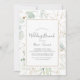 This airy greenery and gold leaf wedding brunch invitation is perfect for a modern wedding event. The elegant botanical design features light and airy watercolor eucalyptus accented with whimsical gold glitter leaves.