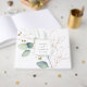 This airy greenery and gold leaf wedding guest book is perfect for a modern wedding. The elegant botanical design features light and airy watercolor eucalyptus accented with whimsical gold glitter leaves. Personalise the front cover with the names of the bride and groom and the wedding date.