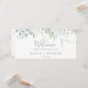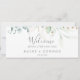This airy greenery hanging seating chart welcome header is perfect for a modern wedding. The elegant botanical design features light and airy watercolor eucalyptus accented with whimsical gold glitter leaves. The card prints on the front and back (double-sided). Please check the collection for the coordinating table number seating chart cards.