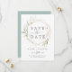 This airy greenery save the date announcement card is perfect for a modern wedding. The elegant botanical design features light and airy watercolor eucalyptus accented with whimsical gold glitter leaves.