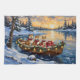 Bring loyal, dignified charm to your holiday season with this majestic Akita Christmas design! This magical scene features three powerful, fluffy-tailed Akitas sitting calmly in a cozy wooden boat, gently floating on a serene snowy lake at sunset. The boat is beautifully adorned with glowing Christmas string lights and fragrant pine garlands, while the dogs wear festive scarves. They are surrounded by colorful wrapped presents and cheerful holly branches. Soft snowflakes gently fall, and the shimmering reflection of the lights on the water creates a truly magical winter holiday atmosphere. This design is a perfect Christmas gift for any Akita owner, dog lover, or admirer of festive and impressive Japanese dog art, capturing the serene joy of the season.