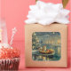 Set sail into the magic of the holiday season with this beautifully detailed illustration, showcasing a proud dog sitting in a festively decorated boat, gliding across a serene Christmas lake. The twinkling lights from nearby pine trees reflect off the water, casting a warm, festive glow that enhances the cosy ambiance. Ornaments dangle from the boat's sides, while glowing lanterns light the way, creating a scene that captures the true essence of Christmas warmth and joy. This nostalgic artwork brings a touch of holiday magic to any space, perfect for those who cherish the spirit of the season.