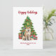 Celebrate the season with this adorable Akita dog holiday card! A festive green Christmas tree with ornaments, bows, and wrapped presents sets the perfect backdrop for a lifelike dog illustration. Personalise the front with your family name, your pet’s name, and the year, while the back features a charming red paw print pattern for a playful finishing touch. Perfect for dog lovers, pet parents, and families who want a unique holiday greeting that showcases their furry friend. I offer many different dog breeds in the collection below.