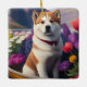Akita Dog on a Paddle: A Scenic Adventure Ceramic Ornament