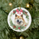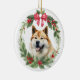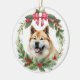 Akita Dog Red Bow Holly Wreath Ceramic Ornament