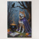 Akita Dog Whimsical Halloween Painting Jigsaw Puzzle