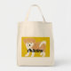 The printing came out very well, better than I had anticipated. The natural color fabric is sturdy with strong seams and comfortable handles. This tote fits easily over my shoulder. As it is filled, the bottom flattens out--very cool! I would buy this product again. This grocery tote holds a lot of groceries! The image quality was very good. The colors were a little darker than I had expected. The darkness may have been due to printing on a natural color fabric rather than on white. The cat design is attractively centered on the tote. The spirit of the design is very lively, just as it appears on the Zazzle website.