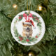 Akita Puppy Dog Red Bow Holly Wreath Ceramic Ornament