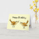 Fun cartoon wren birthday card has 2 wrens talking on the outside and says Happy Birthday. On the inside it says: A little birdie told me.