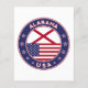 Badge of Alabama with flag of Alabama and flag of USA colours, rounded shape.