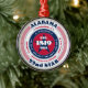 Show your state pride this holiday season with this unique Christmas ornament dedicated to Alabama, the 22nd state. It has red, white, and blue patriotic colours with a circular typography design on a white background. The text includes facts about the state, such as its name, capital, state abbreviation, region, time zone, geographic coordinates, the year of its statehood, and its resident's name. It's a great gift for those who wish to celebrate their state or for those who are feeling nostalgic about their home state.