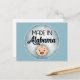 This funny postcard features a cute white baby face that says "Made In Alabama" on a blue background. Perfect for new baby announcements or just for fun.