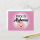 This funny postcard features a cute white baby face that says "Made In Alabama" on a Pink background. Perfect for new baby announcements or just for fun.