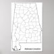 Alabama Counties Blank Outline Map Poster