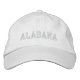 A Basic Adjustable Cap embroidered with the (customisable) text Alabama . Select the hat and text colour and style of your choice.