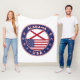 Badge of Alabama with flag of Alabama and flag of USA colours, rounded shape.