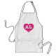 This apron features a vibrant hot pink heart containing the bold, white, upper case letters AL, the official abbreviation for the state of Alabama, the yellowhammer state.