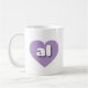 This mug features two lavender hearts containing the bold, white, rounded, lower case letters al, a playful abbreviation for Alabama, the yellowhammer state. Roll tide!