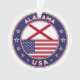 Badge of Alabama with flag of Alabama and flag of USA colours, rounded shape.