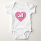 This baby romper contains a calm, cool pink heart containing the bold, white, rounded, lower case letters al, a playful abbreviation for Alabama, the yellowhammer state. Roll tide!