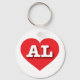 This key chain features a vibrant red heart containing bold white upper case letters AL, the official abbreviation for Alabama, the yellowhammer state.