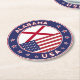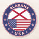 Badge of Alabama with flag of Alabama and flag of USA colours, rounded shape.