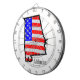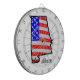 An American flag, the Stars and Stripes outlined with a map of Alabama