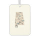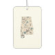 This automotive air freshener features a vintage illustration picture map of the state of Alabama.