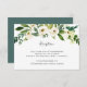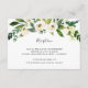 Designed to coordinate with our Alabaster wedding collection, this fresh green and white botanical reception enclosure card features a spray of watercolor greenery and white florals topping your wedding reception details, venue and timing.